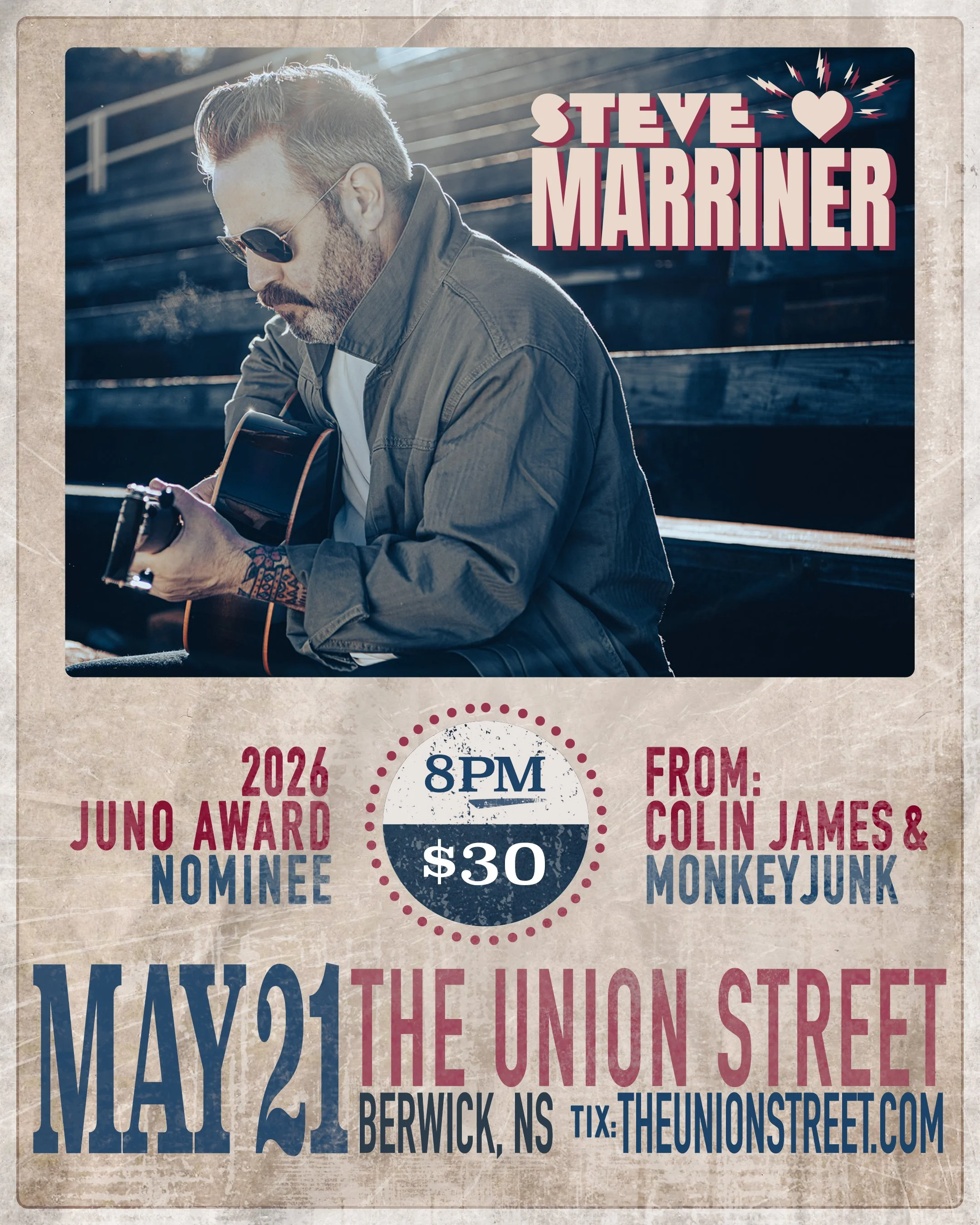That Steve Marriner has accomplished as much as he has in the past decade, remains a story that continues to impress on a variety of fronts and for a variety of reasons. Simply put, it is nothing short of astounding that this Ottawa-raised, Toronto-based musician has driven, guided and participated in so many impressive and acclaimed recording and live performance projects. The multi-instrumentalist, song writing singer sits at, or near the top of the list, as “Canada’s hardest working person in show biz.” Juno nominee Steve Marriner brings his blues and roots show to The Union Street stage May 21st at 8PM.